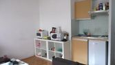 Studio comprenant 1 pièce de 12 m2 avec cuisine aménagée, clic-clac, armoire, table. 1 salle de bain de 5 m2,