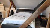 Chambre et salle d'eau SOUS RAMPANTS (voir photos), 1,85 m environ sous poutres, plus en-deçà, moins au-delà