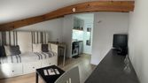 espace séjour/cuisine aménagée ouverte, ( plaque de cuisson, hotte suspendue, four) emplacement lave vaisse…