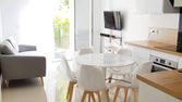 Séjour meuble avec cuisine américaine équipée lave vaisselle lave linge frigo plaque et hotte