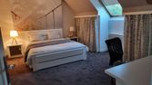 chambre spacieuse avec deux fenêtres, salle de bains attenante avec baignoire et lavabo,petite fenêtre et aé…