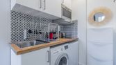 Il comprend : Un séjour de plus de 16 m² au sol, une cuisine aménagée et équipée, une salle d'eau avec WC.