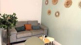 • Un salon cosy avec canapé, feux de bois et bibliothèque !