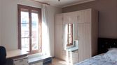 Belle chambre avec grande penderie double, grande fenêtre donnant sur coucher de soleil :