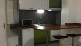 Studio meublé. Cuisine équipée, plaque halogène, réfrigérateur, congélateur, placards haut et bas, Fenêtre a