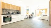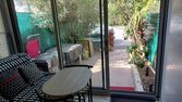 Ce logement comprend la chambre avec salle de bains. La cuisine donne sur le jardin arboré et le Séjour et cu…