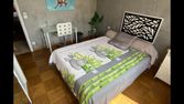 La chambre (9 m²) est bien agencée et optimisée, avec lit simple (200x90), bureau confortable et rangements.