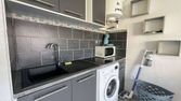 Cuisine équipé avec four et plaque de cuisson. Appartement situé au 1er etage d un immeuble de 2 étages proch…