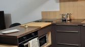 ce studio de 27 m² a une salle de bains avec baignoire et douchette, un WC séparé, un coin cuisine équipé ave…