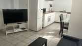Coin cuisine avec plaques électriques, micro-ondes, bouilloire, réfrigérateur et placards de rangement - avec vaisselle et nécessaire de nettoyage -