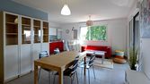 - une cuisine séparée et aménagée (Plaque à induction, four, lave linge, Micro-Ondes et réfrigérateur avec congélateur plus tous les ustensiles et vaisselle)