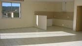 L'entrée donne sur le séjour, côté droit. En fond, la cuisine équipée comprenant une plaque de cuisson 4 feux vitrocéramique, un dosseret en verre trempé, une hotte, un évier cristalite 1 bac, un four, un lave-vaisselle intégré, des tiroirs coulissants, rangements couverts modulables, casseroliers, poubelle intérieure, éléments hauts avec portes relevables, spots intégrés, tablette au dessus de l'évier, niche micro-onde, frigo en supplément, chauffe-eau.