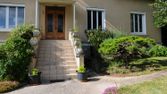Dans un coin de verdure, une maison en pierres située en bord de route.