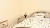 Chambre privée spacieuse pour une personne à l'étage et lumineuse, équipée d'un grand placard comportant une penderie et plusieurs étagères. Salle de bain à partager avec les éventuels voyageurs au même étage comprenant baignoire, douche, deux vasques et placard où se trouvent les serviettes et les gants. Toilettes privées avec lave mains en bas de l'escalier. La maison avec sa terrasse et son agréable jardin est située dans un village avec toutes ses commodités.