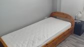Très belle clarté dans cette chambre spacieuse. Un meuble de rangement avec trois tiroirs. Un lit une personn…