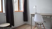 Il comprend 2 chambres entièrement équipées : literie neuve complète, table et lampe de chevet, penderie et commodes, bureau avec lampe de bureau et tableau perforé, chaise pivotante, bibliothèque, clés individuelles.