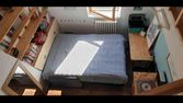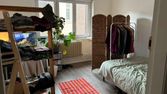 2 pièces : 1 chambre / bureau comprenant un lit 1 place mezzanine avec bureau, chaise, 1 commode avec 2 fenêtres double vitrage.