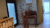 ??D'une cabine de douche carrelé et sa colonne de douche noir, chambre en parquet, peinture au goût du jour « Terracotta »