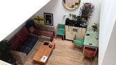L'appartement s'étend sur deux niveaux : le premier comprend la cuisine, le salon, et une salle de bain avec baignoire. Au deuxième se trouvent deux autres chambres et la seconde salle de bain. Chaque étage est équipé de toilettes.