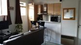 Une grande pièce de vie avec un séjour et une cuisine équipée et aménagée