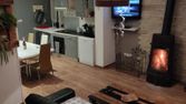 composé d'une pièce en bas avec cuisine, salle de bain avec baignoire/douche, toilette séparé.