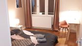 Lit de 140 avec matelas et sommier de marque, chevet, dressing, bureau, prise fibre, TV connectée, serrure individuelle.