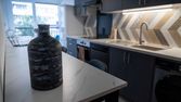 Les communs de la colocation (sol marbre) disposent d'une grande cuisine équipée avec tout l'électroménager, vaisselle, matériel de nettoyage et repassage, de 2 salles de bains avec douches, vasques et sèche serviettes, de 2 WC, coin TV avec canapé.