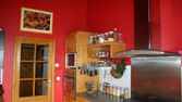 Un grand salon lumineux avec cuisine ouverte, entièrement équipée