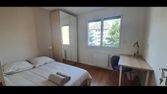 La chambre est non meublée, mais il y a une armoire intégrée au mur. L’appartement est dans une résidence calme, et bien isolée (on entend très peu les voisins).