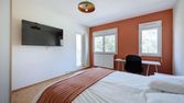 3 chambres : chaque chambre est équipée d’un lit en 140 (avec alèse matelas, couette et oreiller), d’un bureau, d’une table de nuit, d’un dressing et ferme à clés