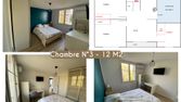 1 chambre dispose d'une salle de bain privative, et les 2 autres chambres se partagent une autre salle de bain .
