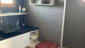 Mon adorable studio possède un coin cuisine équipée avec micro ondes, frigo,plaque vitroceramiques hotte aspi…