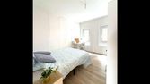 - 3 grandes chambres avec lit double, meubles de rangement/penderie, bureau et étagères, couette et oreillers. 2 des chambres comprennent un espace bureau/rangement au RDC et un espace nuit sur une mezzanine (voir photos).