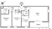 Cet T3 se compose d'un grand séjour de 26m², une cuisine aménagée et équipée ouverte, deux chambres (de 9 et 12 m²), une salle d'eau et un wc.