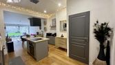 - À l'étage : Un escalier intérieur menant à l'espace d'habitation principal composé : d'un dégagement sous forme de long couloir desservant : une salle de bains avec WC intégrés, une première chambre, une cuisine indépendante, une seconde chambre, un grand séjour situé en extrémité de couloir.