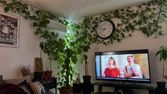 - Séjour lumineux avec canapé, TV écran plat et mobilier.
