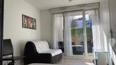 Les parties communes sont également meublées : cuisine équipée, canapés, télévision et lave linge.