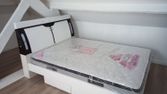 Chambre disposant un lit double avec matelas et son placard pour ranger les vêtements.