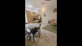 Une salle à manger donnant sur une cuisine équipée et un séjour, un bureau pouvant servir de chambre, une salle d'eau avec wc, une chambre.