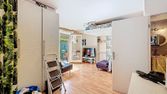 Un appartement composé d'une entrée, une pièce principale avec cuisine et une salle d'eau avec WC.