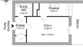 Studio situé au 1er étage, comprenant un coin cuisine équipé (plaque et réfrigérateur) séparé du séjour par un bar, une douche et des WC séparés.
