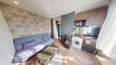 Pièce de vie lumineuse avec cuisine aménagée et équipée