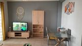 t2 meublé ,de plain pied, terrasse privative,mi couverte, parking privé, chauffage individuel, clim reversib…
