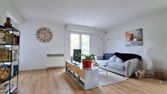 L'appartement, situé au 1er étage sans ascenseur, comprend une entrée avec placard, un salon-séjour donnant accès à un balcon, une cuisine semi-ouverte aménagée et équipée avec plaques de cuisson, hotte, four, lave-vaisselle et réfrigérateur avec compartiment congélateur. L'espace nuit se compose de deux chambres avec placards intégrés, d'une salle de bains et d¿un wc indépendant.