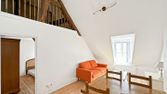Dans ancien hotel particulier, appartement au 1er et dernier étage comprenant : entrée sur sejour, cuisine ouverte aménagée partiellement équipée, salle de douche avec wc, chambre en mezzanine.