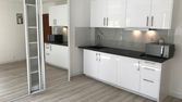 - cuisine : réfrigérateur/congélateur, four micro-ondes/grill/combiné, plaques de cuisson à induction, hotte et lave linge, placards et grand plan de travail.