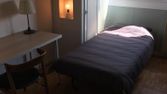 Il s'agit d'une chambre d'une superficie De 11 m2 environ , avec un lit à une Place , 1 bureau et des armoir…
